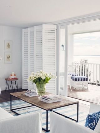 Featuring warm oak floorboards, a light-filled living room with a gas fireplace and plush linen sofas, the space opens onto an expansive deck with uninterrupted ocean views — creating an elevated retreat designed for luxurious seaside living.