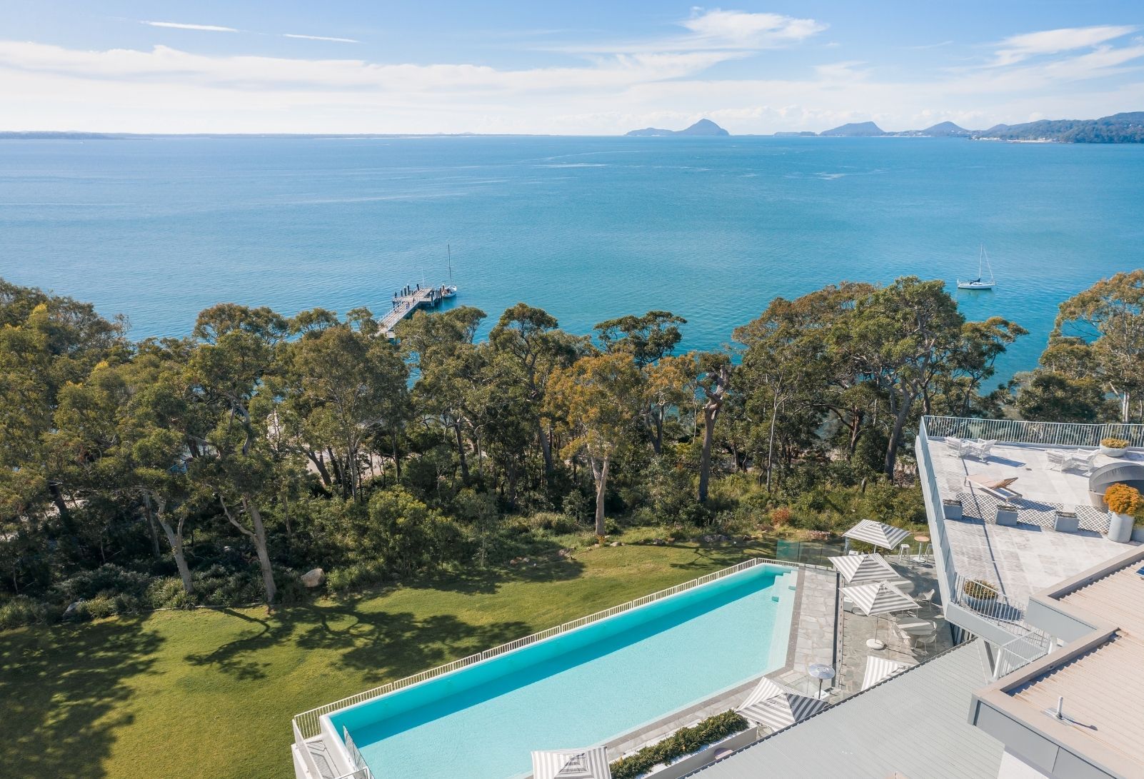 A stylish and intimate seaside retreat for relaxation.