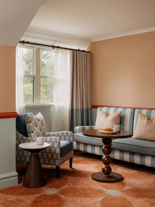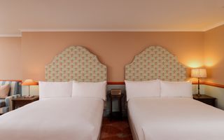 Our Deluxe Twin Room features traditional design with sumptuous soft furnishings, elegant décor with Wedgwood wallpaper, complete with two queen-size beds, ideal for a family of 2 adults and 2 children, and views of the Resort and manicured gardens.