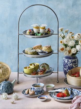 Miss Lilian’s Asian-inspired high tea brings together a thoughtfully crafted selection of savoury and sweet creations. From roasted duck bites and lemongrass Wagyu beef rice paper rolls to delicate Cantonese-style dumplings, each savoury element is rich in flavour and finesse. The experience continues with freshly baked scones served with house-made mixed berry preserve, alongside bright yuzu meringue tartlets and soft coconut pandan crepe rolls.