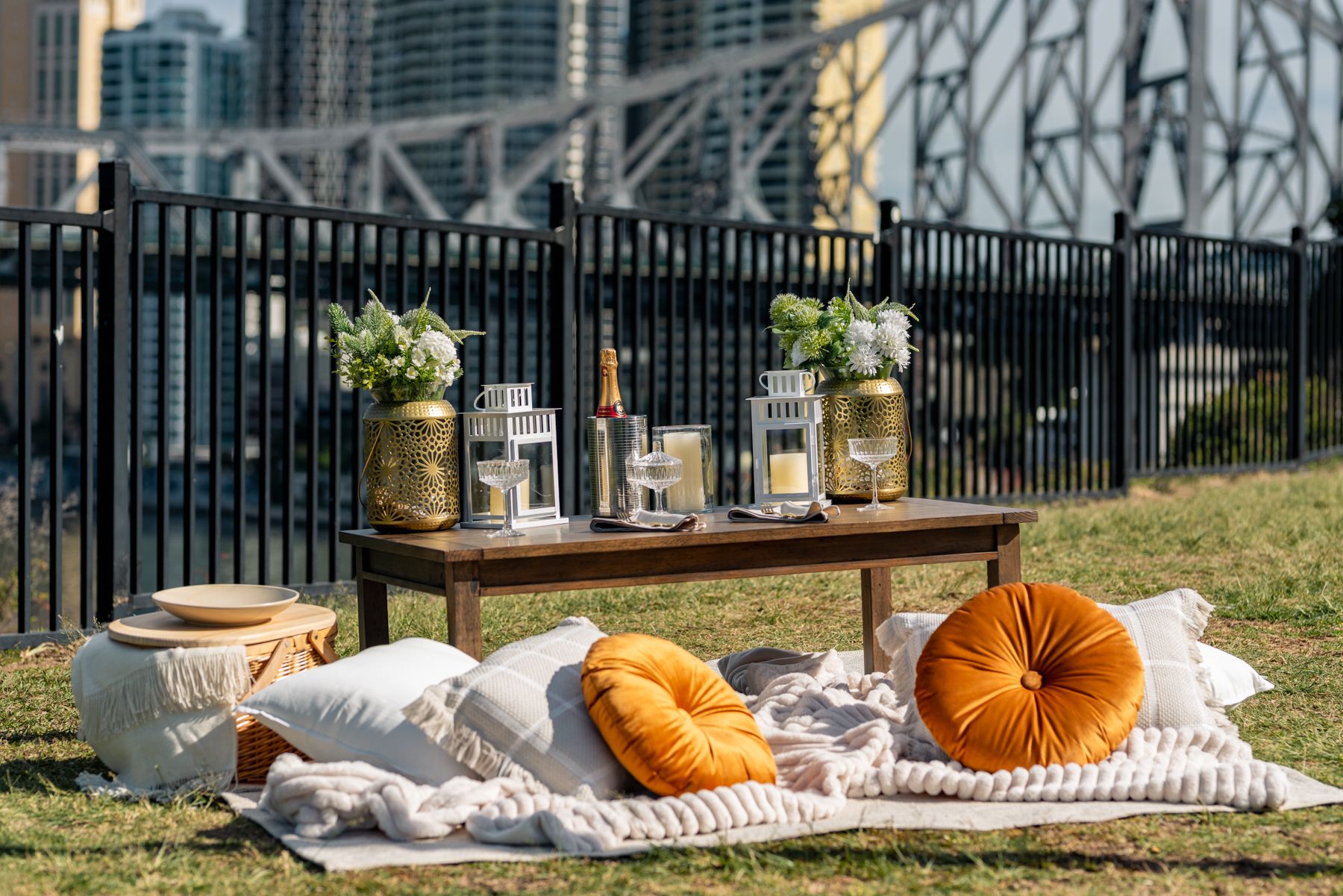 Indulge in a gourmet picnic experience at Wilson’s Outlook overlooking the spectacular Story Bridge and Brisbane City.