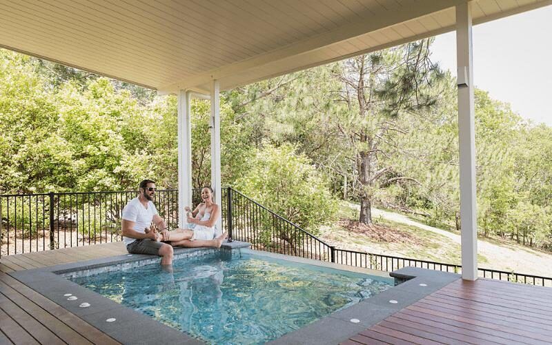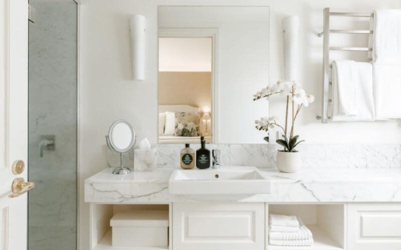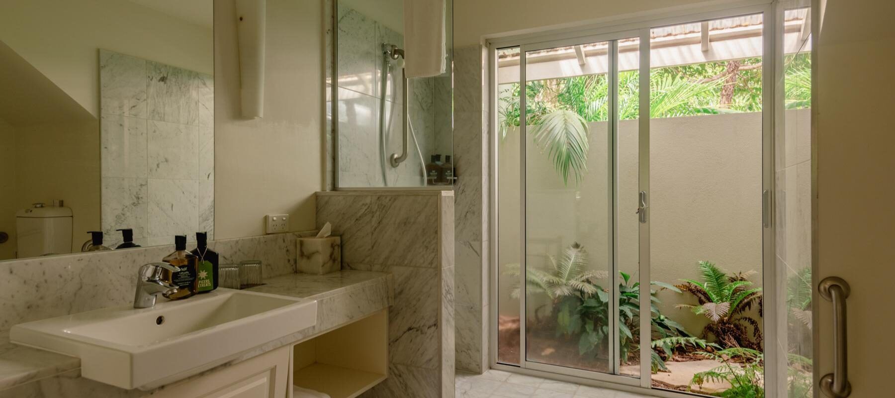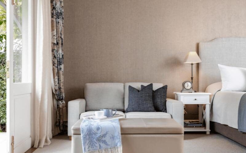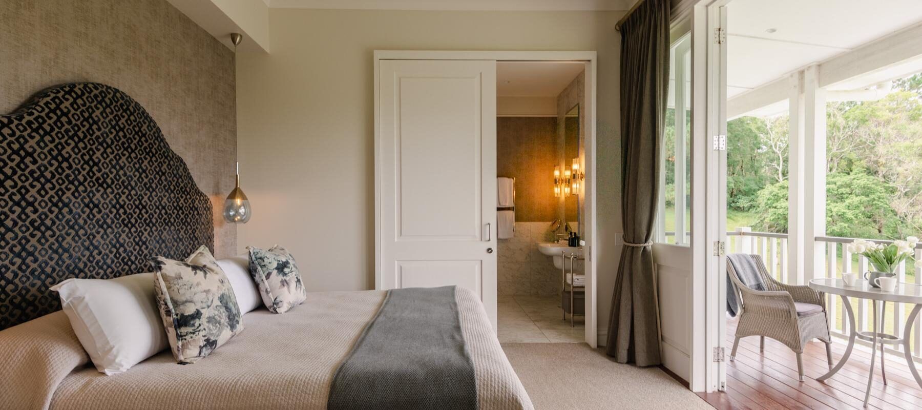 Interiors feature king-size beds, walk-in showers, and soft, natural textures for a relaxing stay.