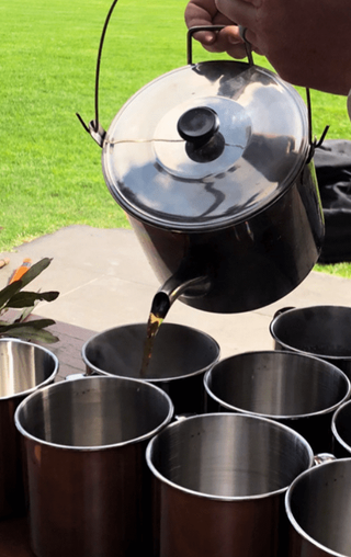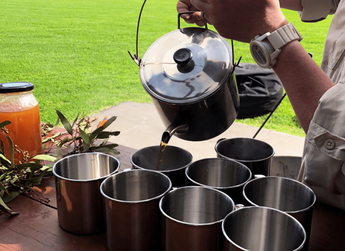 Using techniques similar to those used by early settlers and explorers, we make a pot of traditional billy tea over a roaring fire. Sip this traditional brew with a delicious piece of damper with your choice of treacle, malt syrup or honey collected from bees from our property.