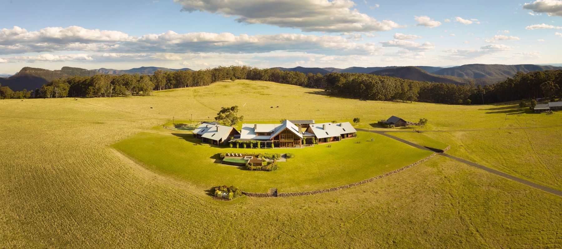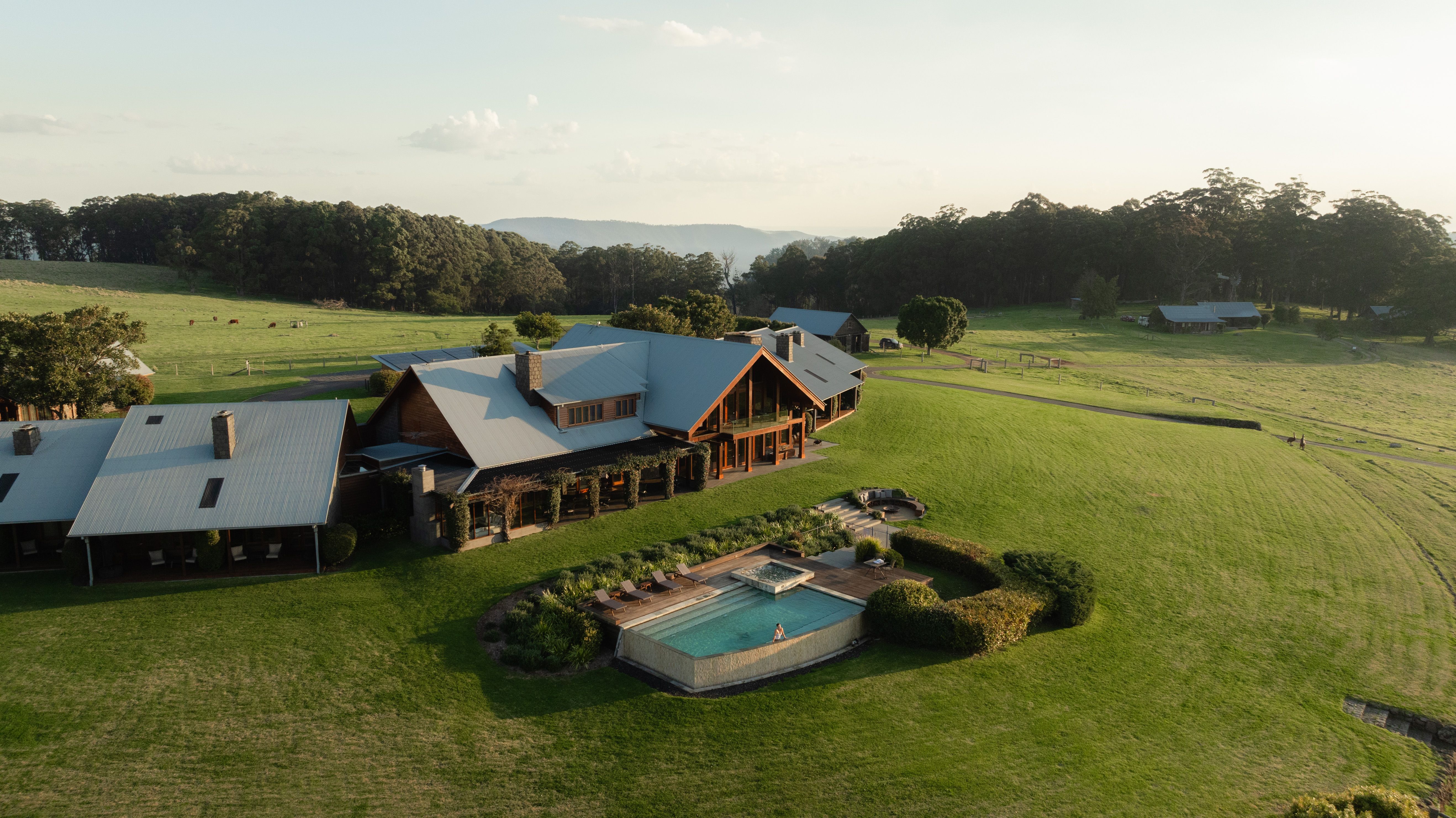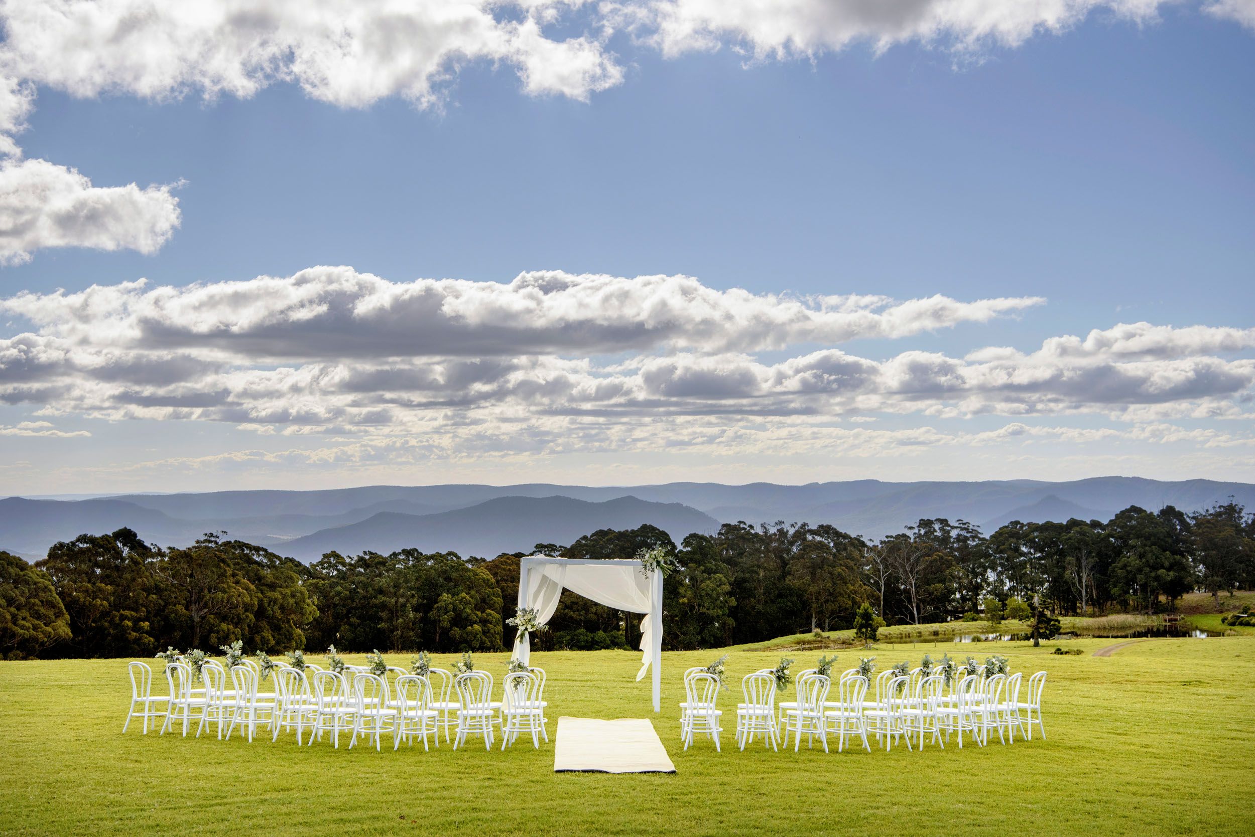 The scene for your perfect day is set 1100 metres above sea level on a stunningly beautiful grassy plateau where a majestic, architecturally designed cedar and bluestone lodge frames your perfect day.
