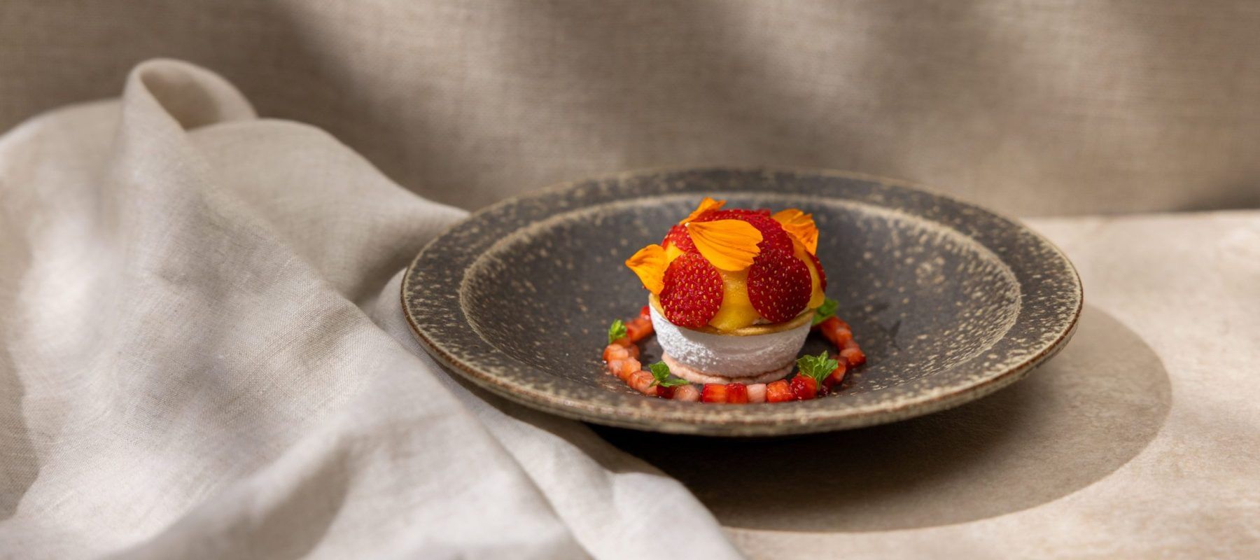 Strawberry mousse, strawberry compote, créme chantilly, sponge cake