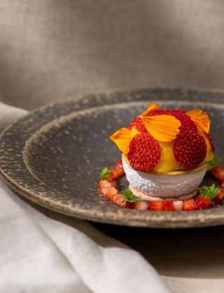 Lemon verbena panna cotta, citrus and pineapple compote, native pepper sable