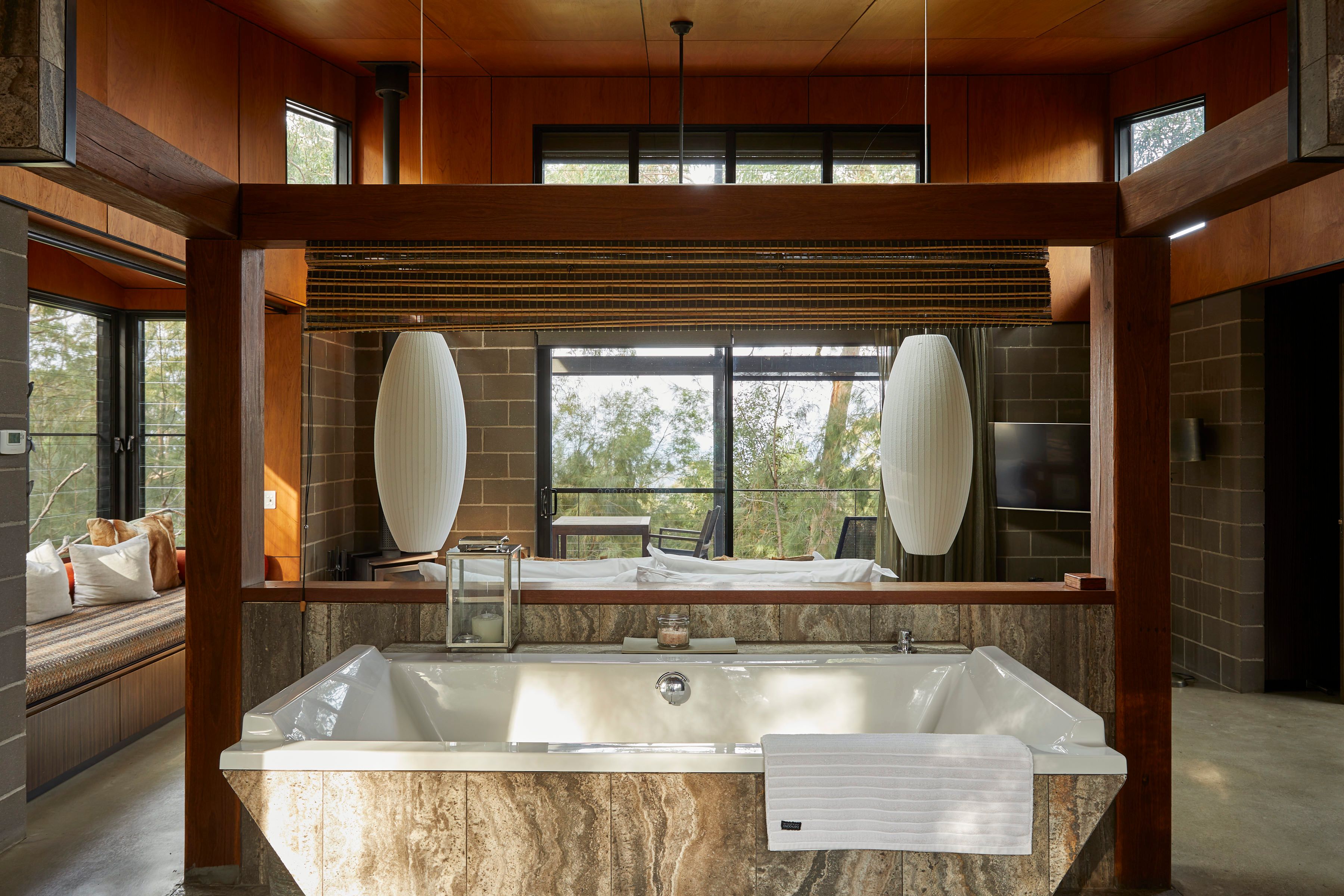 Surrounded by native forest, the Luxury Bush Suites offer an unparalleled sense of privacy and immersion in nature. With only towering Angophora gums and Lyrebirds as neighbours, guests can enjoy the serenity of the bush. The suites’ large open-plan design invites the outdoors in, providing uninterrupted views from the bed, lounge, and deck for a truly immersive experience.