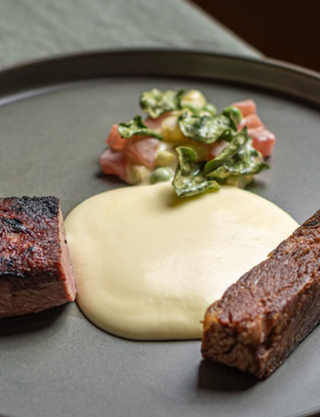 100 day aged sirloin steak – spiced tomato relish – brown butter