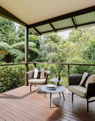 Each Luxury Forest Villa features a king bedroom, a comfortable lounge with fireplace, a kitchenette, and an outdoor deck overlooking the forest surrounds.